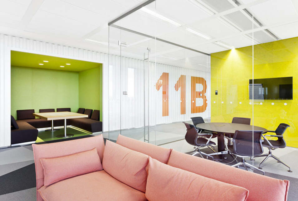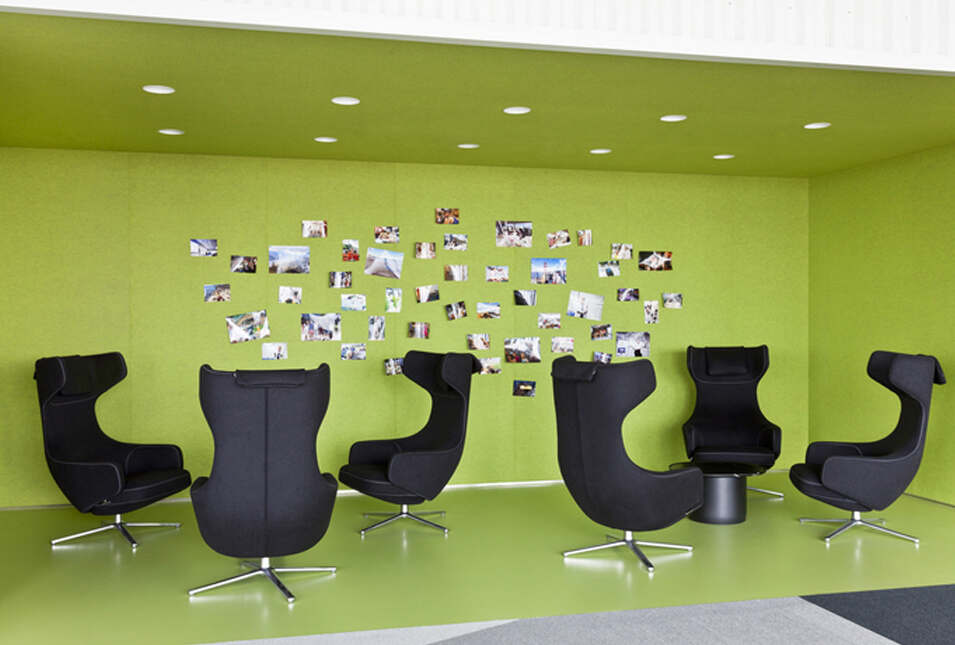 設計介紹:好玩的辦公室,體育館、娛樂室、游戲室、創造放松的空間,石頭型的多彩座椅,更顯趣味性,粉色的沙發是休息的法寶,并且設置的有圖書館,供人們休息室查閱,軟裝的座椅舒適,實用,還有用餐區,木質的座椅更加安全,健康,照片墻以綠色為背景顯得清晰明了,人性化,設計了體育館,員工們健身娛樂。