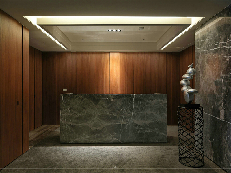 三、墻面木飾面板墻面木飾面的鋪設也是墻面裝飾中比較常見的一種,在辦公室裝修設計過程中墻面可以進行直接裝飾面板的安裝,不僅可以給空間帶來的奢華大氣的辦公室裝修氛圍,還可以與不銹鋼線條結合造型使用,辦公室裝修效果相當棒,這樣墻面的設計既平整又詳盡,還可以很好的防止板材運用帶來的短促感的發作。