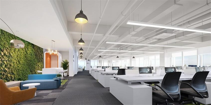在辦公空間設計時就要將有機、自然的理念融入辦公室裝修設計,在滿足功能使用的情況下,盡量減少獨立隔斷間,讓空間更加開敞流通,打造促進員工協作的開放式動態空間;再者增加了辦公空間裝飾的豐富性,綠色植物搭配點綴,讓企業更加有生機。