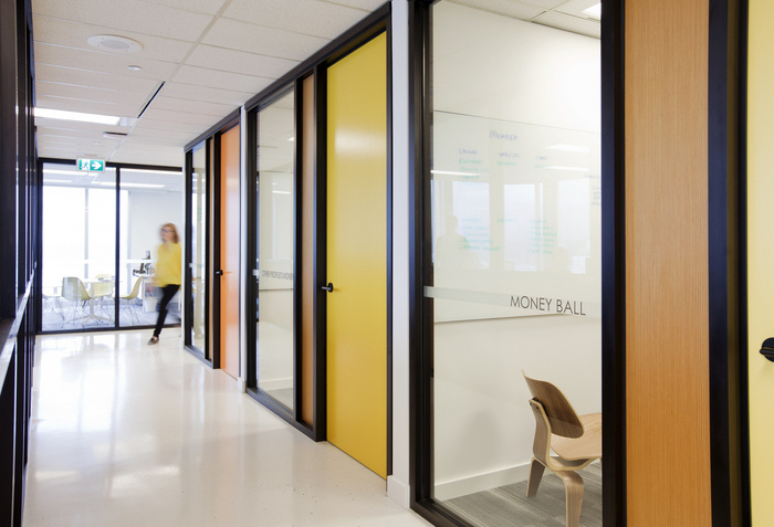 3、最后針對(duì)于有一些需要私密性的辦公室裝修需求,則可以在玻璃隔斷上使用貼膜,不僅成本低廉,而且樣式眾多。而對(duì)于玻璃隔斷的入戶門來(lái)說(shuō)不單單可以使用玻璃門,也可以采用私密性更好的木門作為替換。如果有特殊需求也可以采用最新的電子霧化玻璃,通電則霧化玻璃科技感十足。