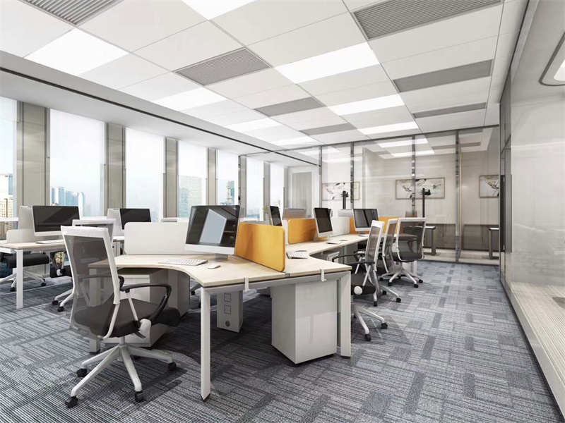 對于敞開辦公區,員工較多,可以根據情況決定是否吊頂,如果一定要吊頂的話,一定要把吊頂高度提到最高吊頂位置,否則會給人一種壓抑感,這不利于營造輕松愉快的辦公氛圍。與高而簡單的天花板相比,它可以在視覺上擴展辦公空間。