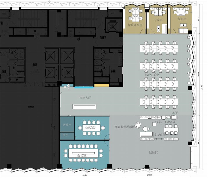 一、設計規劃時動靜分區:根據公司員工職務的不同,部門的不同,我們要對辦公室設計時要進行合理分區,經常出入的員工可以安排在靠近前廳方向;研發設計部門需要相對安靜辦公環境的,可以安排相對靠里面,或安排在獨立辦公室;財務部門可以盡量安排在較私密的位置;總經理辦公室可以安排在盡可能觀察全局的位置。