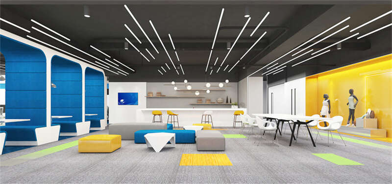 黃色代表溫和、明朗、高貴、快活等,對(duì)人來(lái)說(shuō)使用黃色更能使人激發(fā)靈感,因此黃色在辦公室裝修過(guò)程中常常被用于開敞的員工休閑活動(dòng)區(qū)或多人使用的功能型房間;