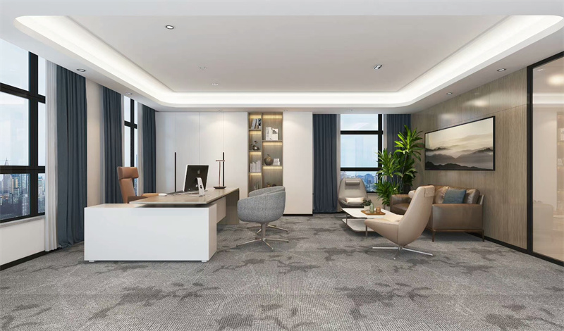 (2)辦公區(qū):辦公區(qū)設(shè)計(jì)要開闊,給人大氣不擁擠。在設(shè)計(jì)時(shí)根據(jù)需求設(shè)計(jì)成開放式還是封閉式,開放式的辦公間只需要敲掉一些不必要的墻面,從而使得室內(nèi)更為寬敞,也能拉近員工之間的距離。封閉式的辦公區(qū)可以通過隔斷式的設(shè)計(jì),從而使得各個(gè)區(qū)域保