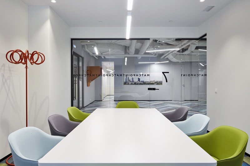因為1200平米的辦公空間有限,所以部分區(qū)域用隔音玻璃做隔斷,既能阻隔空間,又能讓每個空間都有自己的私密性。在設(shè)計會議室的時候,布局要簡單一些,讓更好的創(chuàng)意在舒適的空間里發(fā)揮出來,提高工作效率。