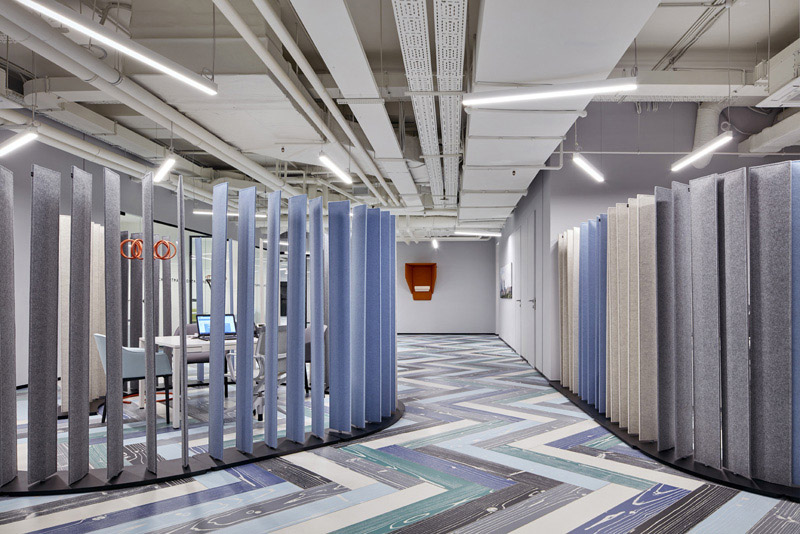 空間業(yè)態(tài)的規(guī)劃會產(chǎn)生很大的影響。創(chuàng)建一個緩沖區(qū)可以減輕這種不幸的影響。可以用展示柜或者收納柜來緩沖,可以緩解空間不通暢的尷尬局面,也可以讓實用性更高,收納空間更大,辦公室看起來更簡潔。